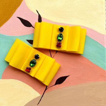 Funde din panglica ripsata galbena, decorate cu strasuri de sticla